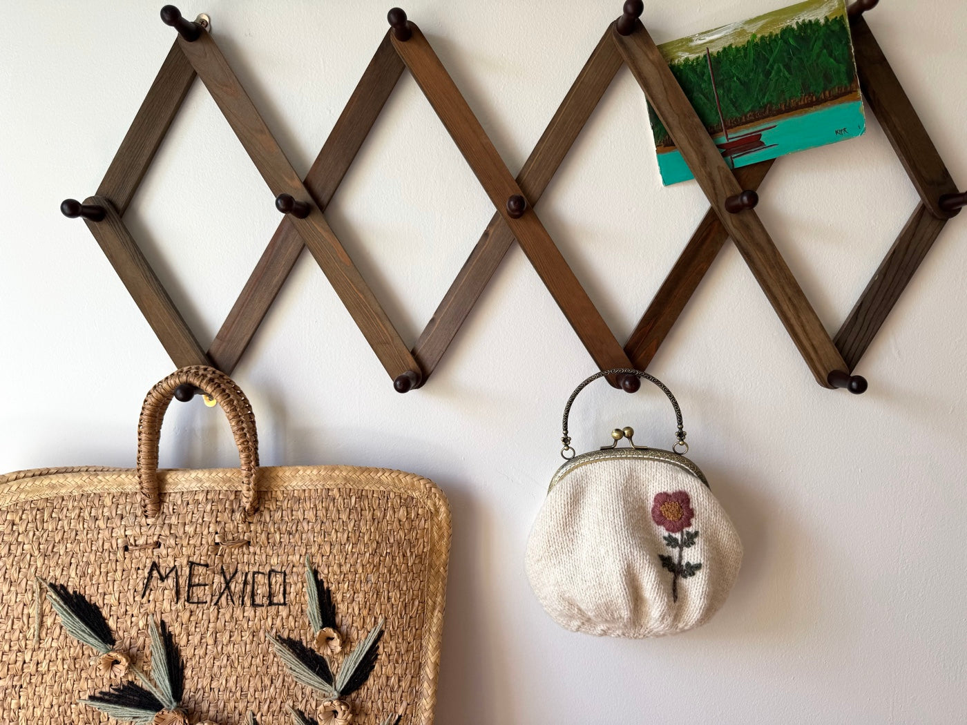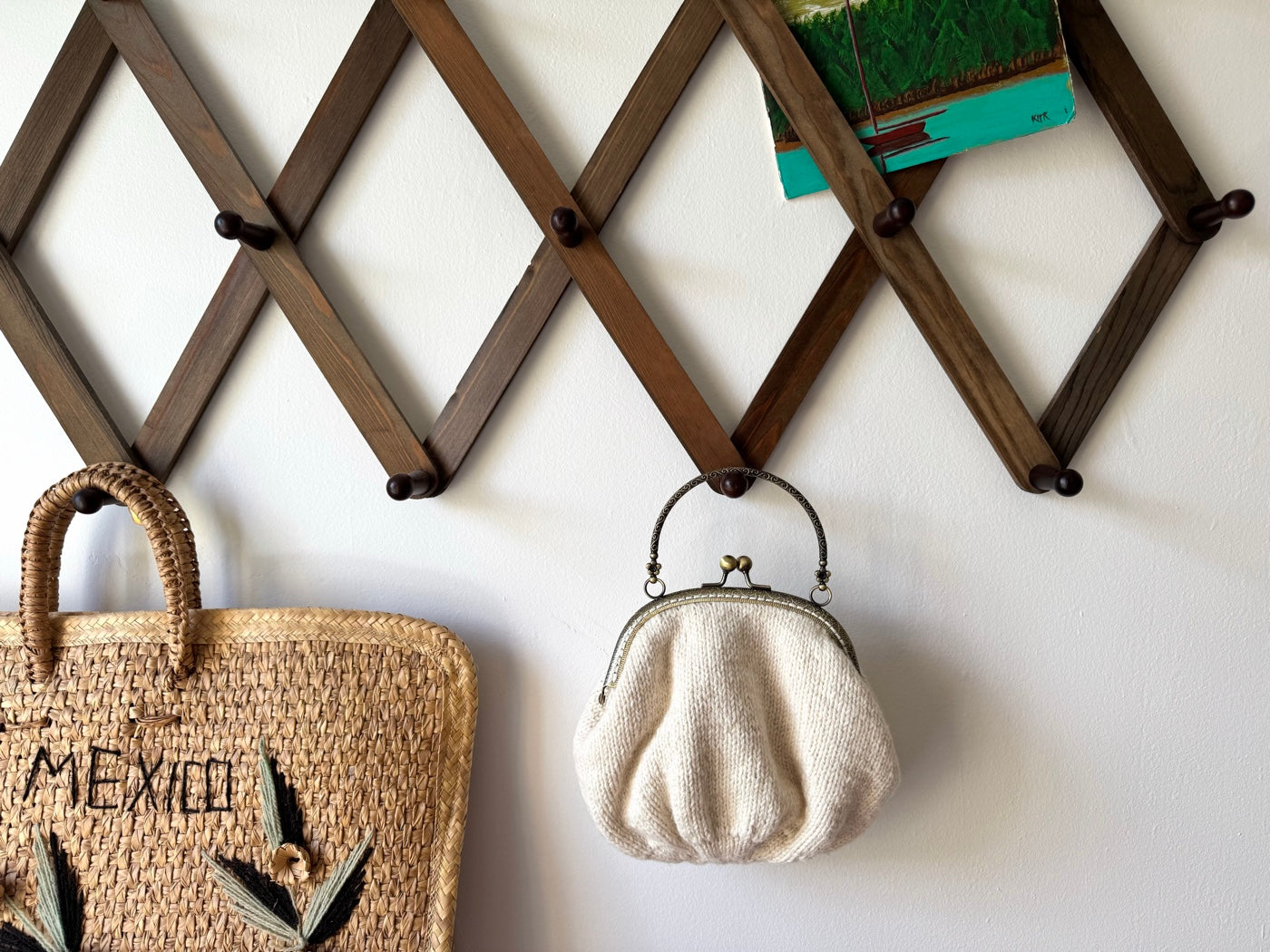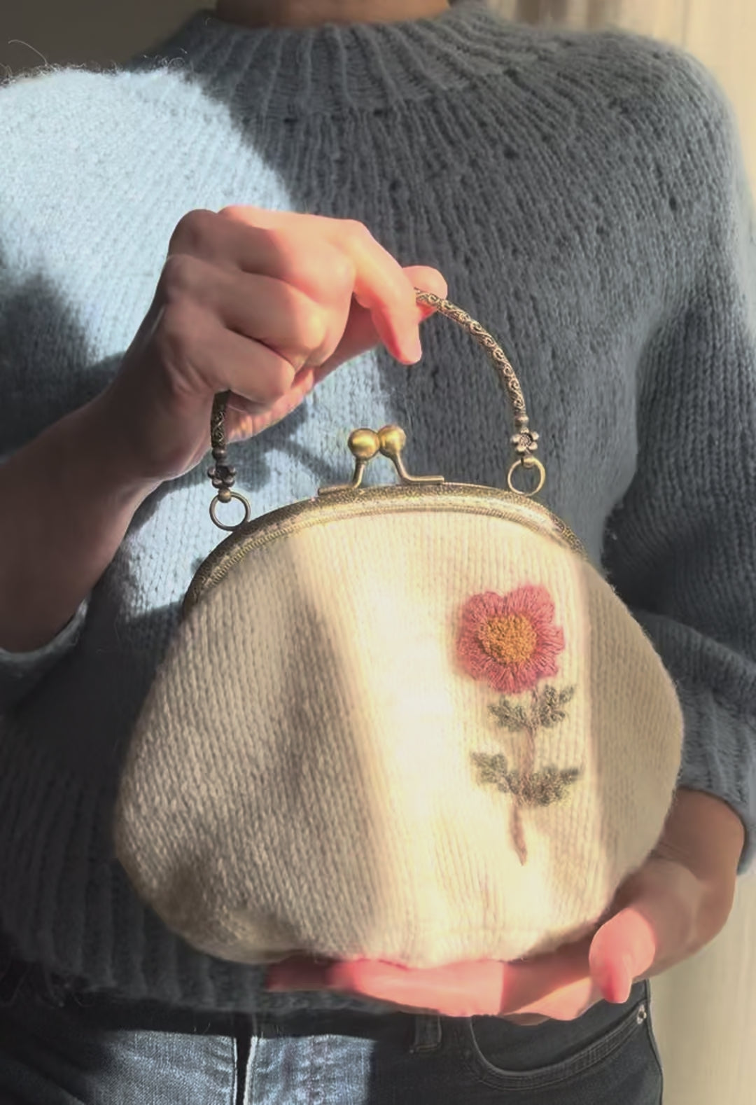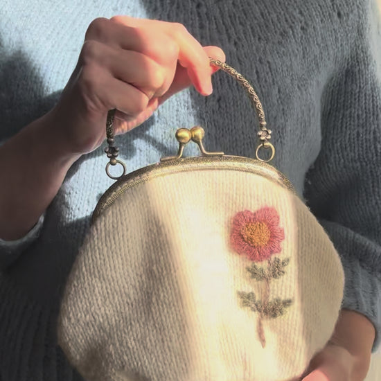 Hand Knit Wildflower Purse | Cream Embroidered Bag with Kiss Clasp